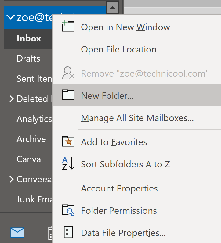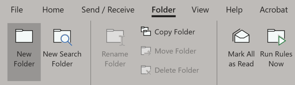 - Go to the “folder” tab at the top of the page next to “file” “home” “send/receive”.